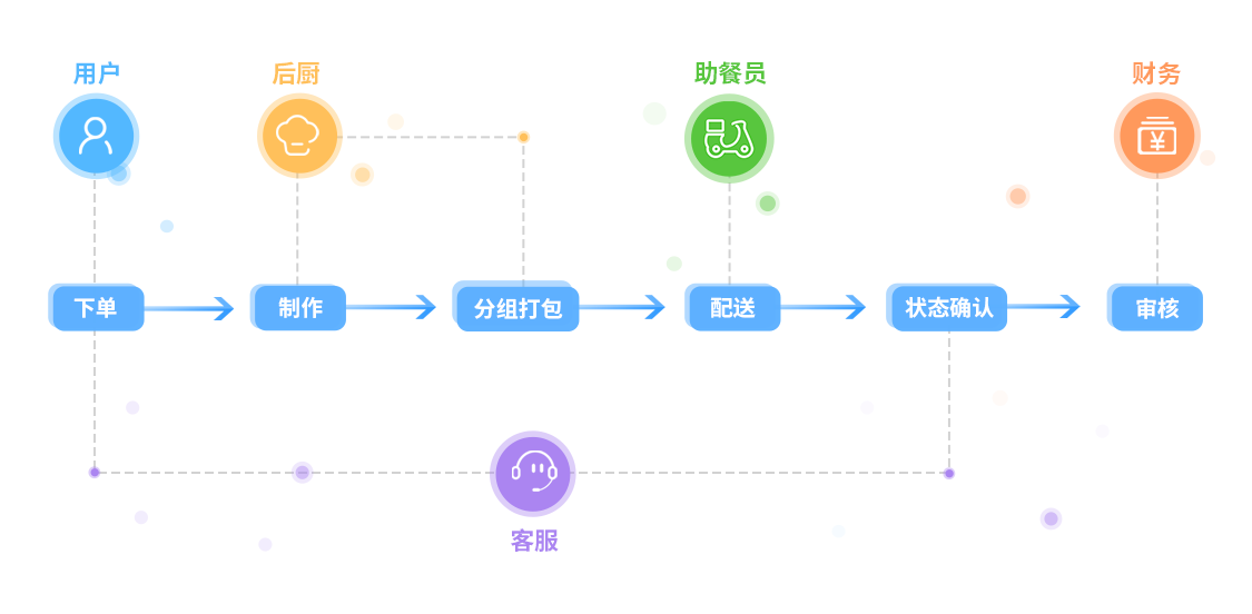 系统后台以餐为单元进行全流程独立管理,分割成每一餐的独立小任务,实现小循环内部闭环,业务清晰,避免交叉与拖延。
