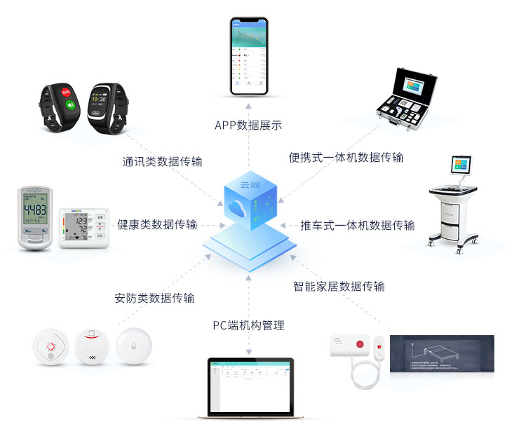 健康e族智慧居家养老服务系统主要是以社区为依托的一站式服务融合,以老人为对象的精准化营销落地,以平台为支撑的多维度管理流程,以智能为应用的移动式运营体验。是集服务、营销、管理、运营于一体的智慧养老平台,运用互联网、移动互联网、物联网“三网”融合技术,整合优质养老资源,建立一站式智慧服务体系;将优质的产品和服务,传递给所需要的老人;通过跨平台数据同步,连通各部门,形成一个完整的智慧管理闭环;通过平台智能互联,动态掌握老人的生活、健康、安全等状况,让老人、医生、服务商、子女之间不再有“距离”,构建一个移动式智慧养老生态。